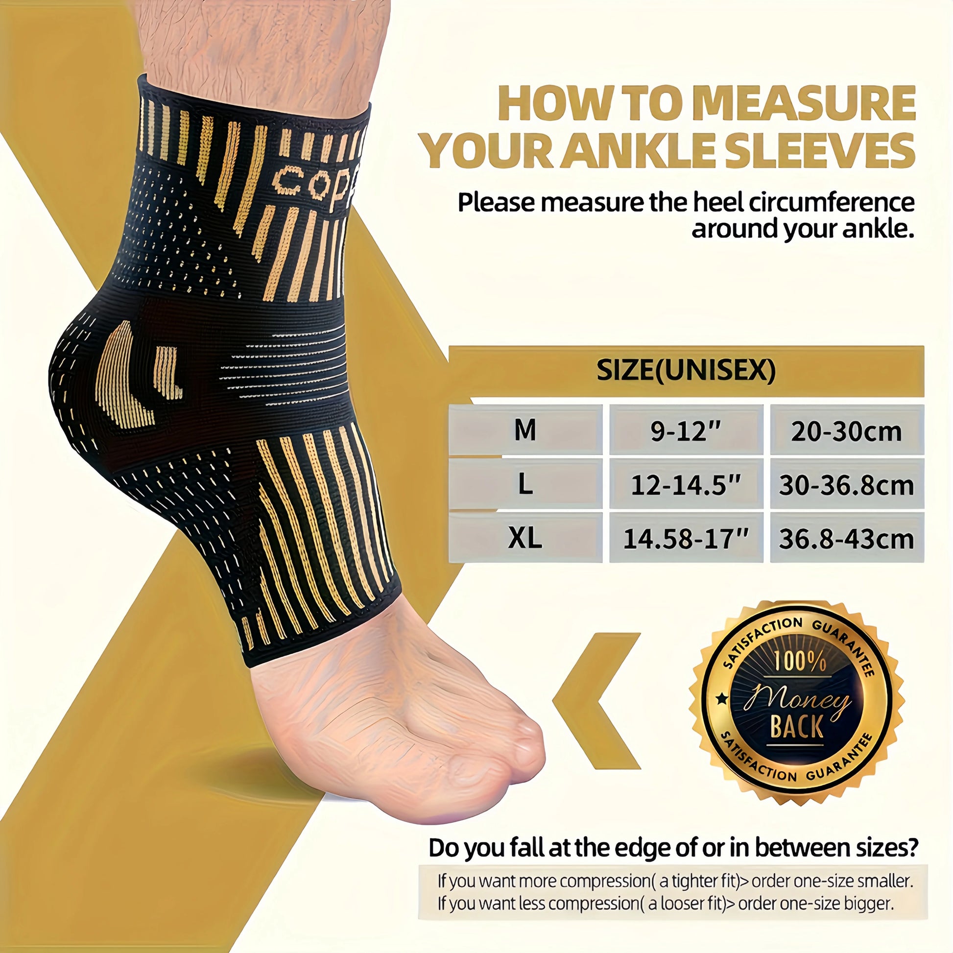 2 PCS Copper Ion Sports Ankle Brace, Ankle Support Sets, Men's and Women's Compression Socks, Basketball, Football, Tennis, Running Protective Gear