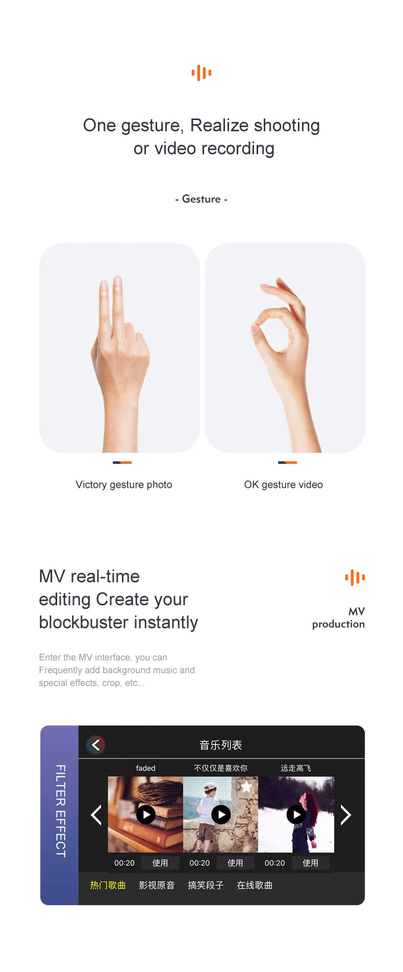 Gesture shooting/video recognition: within 1500M