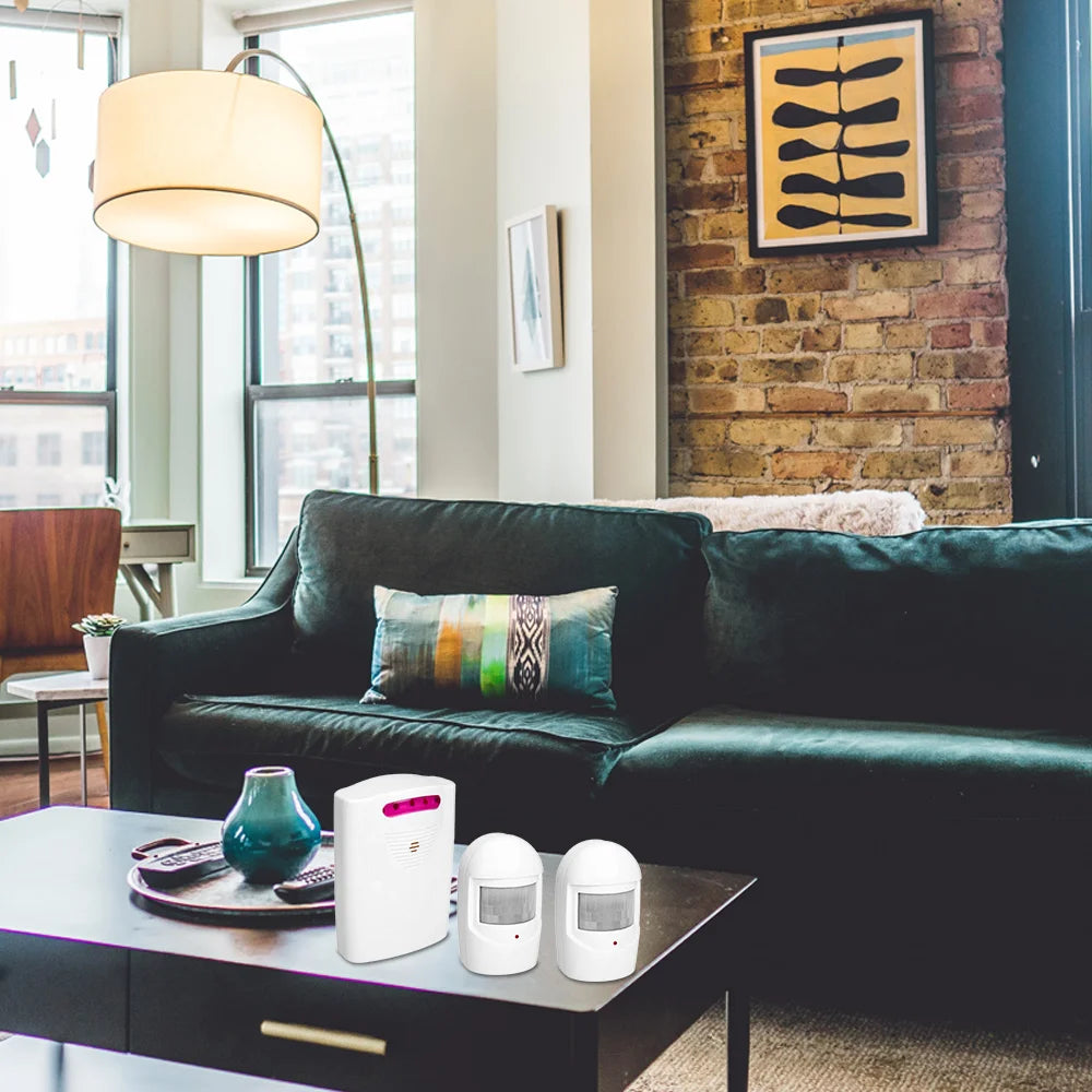 [Wireless IR Motion Sensor Alarm] With 1 receivers and 2 transmitters, can effectively detect movement in the surrounding areas and trigger alert to the linked receiver, providing security for your property and loved ones.