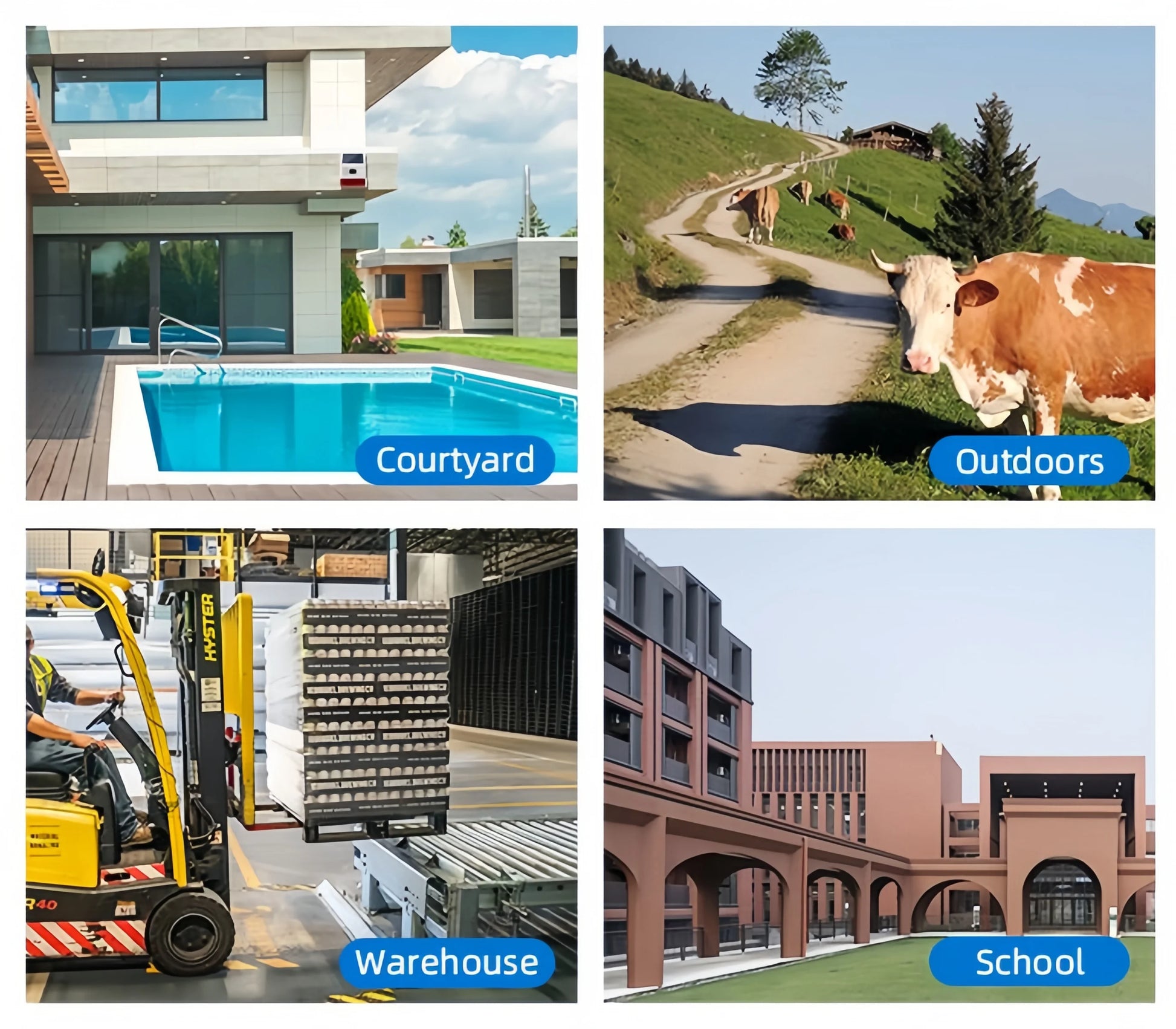 nterface】This outdoor alarm system, When an intruder triggers the sensor/detector, emits a loud and attention-grabbing 100-decibel siren accompanied by a flashing red LED light. It alerts neighbors and passersby in emergencies, effectively deterring potential intruders.