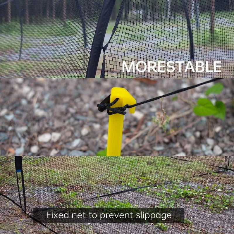 - 🌞【 Easy to Carry and Assemble 】 This hitting net is one-piece design and features innovative elasticated poles design, makes it convenient to set up and take down by 2 people in 15 minutes. Come with a carry bag, convenience to carry the batting cage backyard training net outdoor or anywhere you like, starting your training with this portable softball baseball training cage equipment. Adjustable guy ropes & steel ground pegs included.