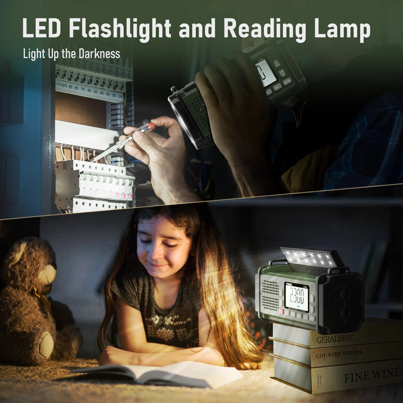 5 Ways to Power Supply: Built in an upgraded 10000mAh rechargeable battery for a super long battery life. USB-C charging is quick and convenient for daily use. Hand crank and solar charging are essential for camping or emergencies. Still worried about running out of battery? No worries! Just pop in 3 AAA batteries to keep the solar radio going strong. You can expect a emergency weather crank radio that never loses power! (Note: Only internal battery can be charged, AAA batteries cannot be charged.)