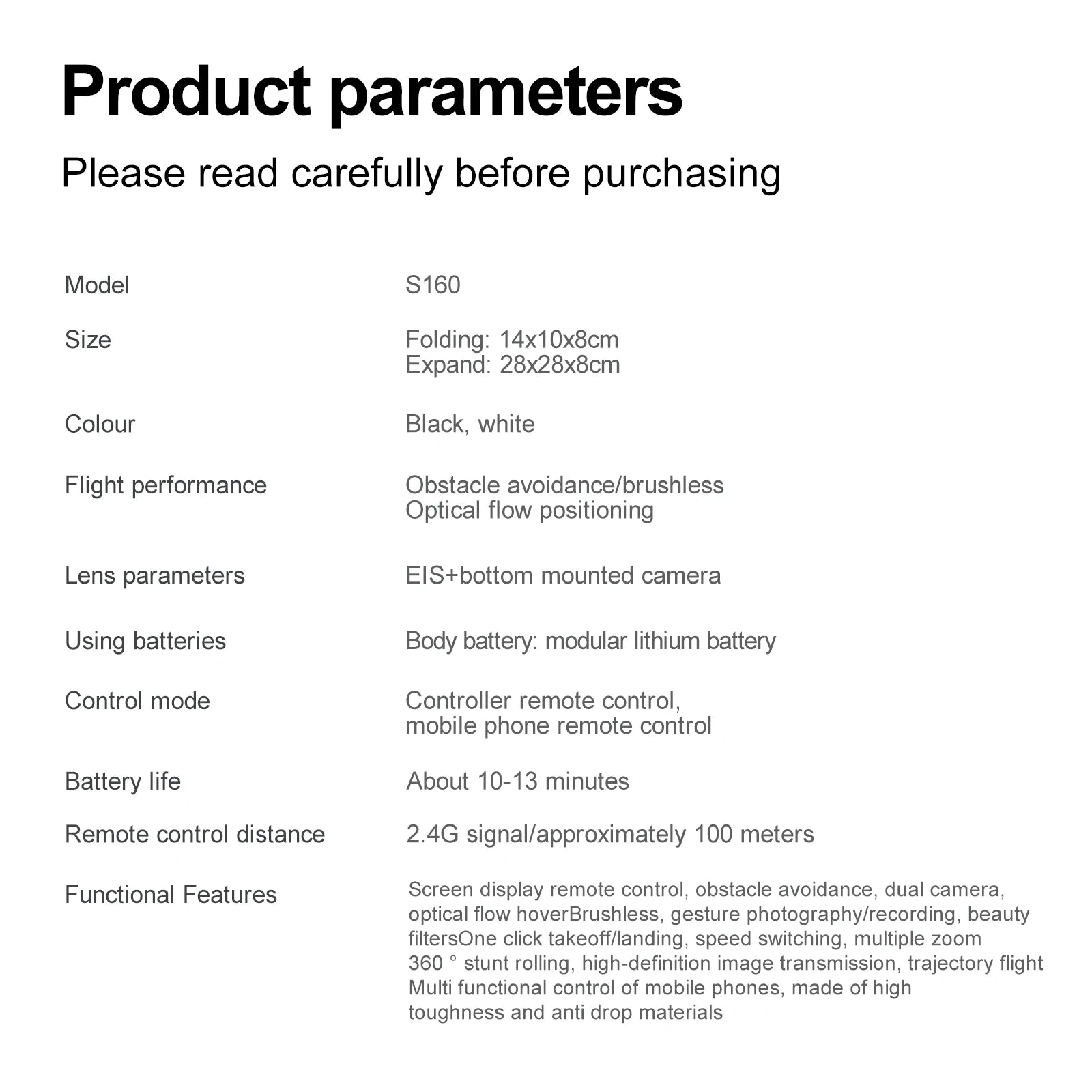 S160 Color LED Drone Professional 4K HD Quadcopter