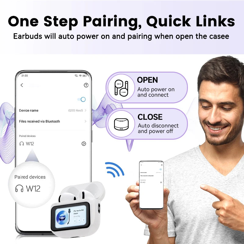 Convenient Features: Easily locate earbuds, set time and alarm, take photos, and use as LED flashlight for added practicality.